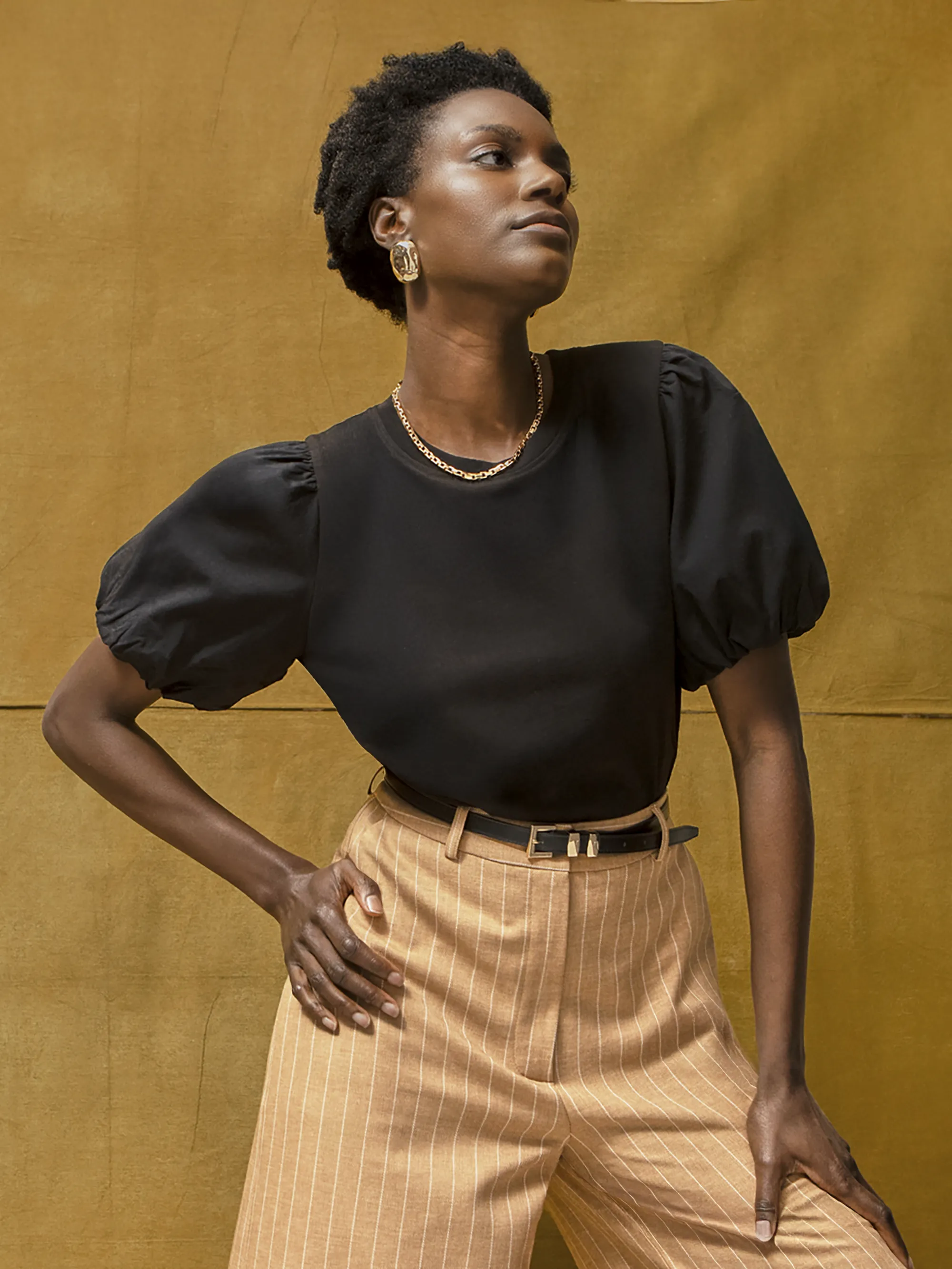 Black Pure Cotton Puff Sleeve T-Shirt