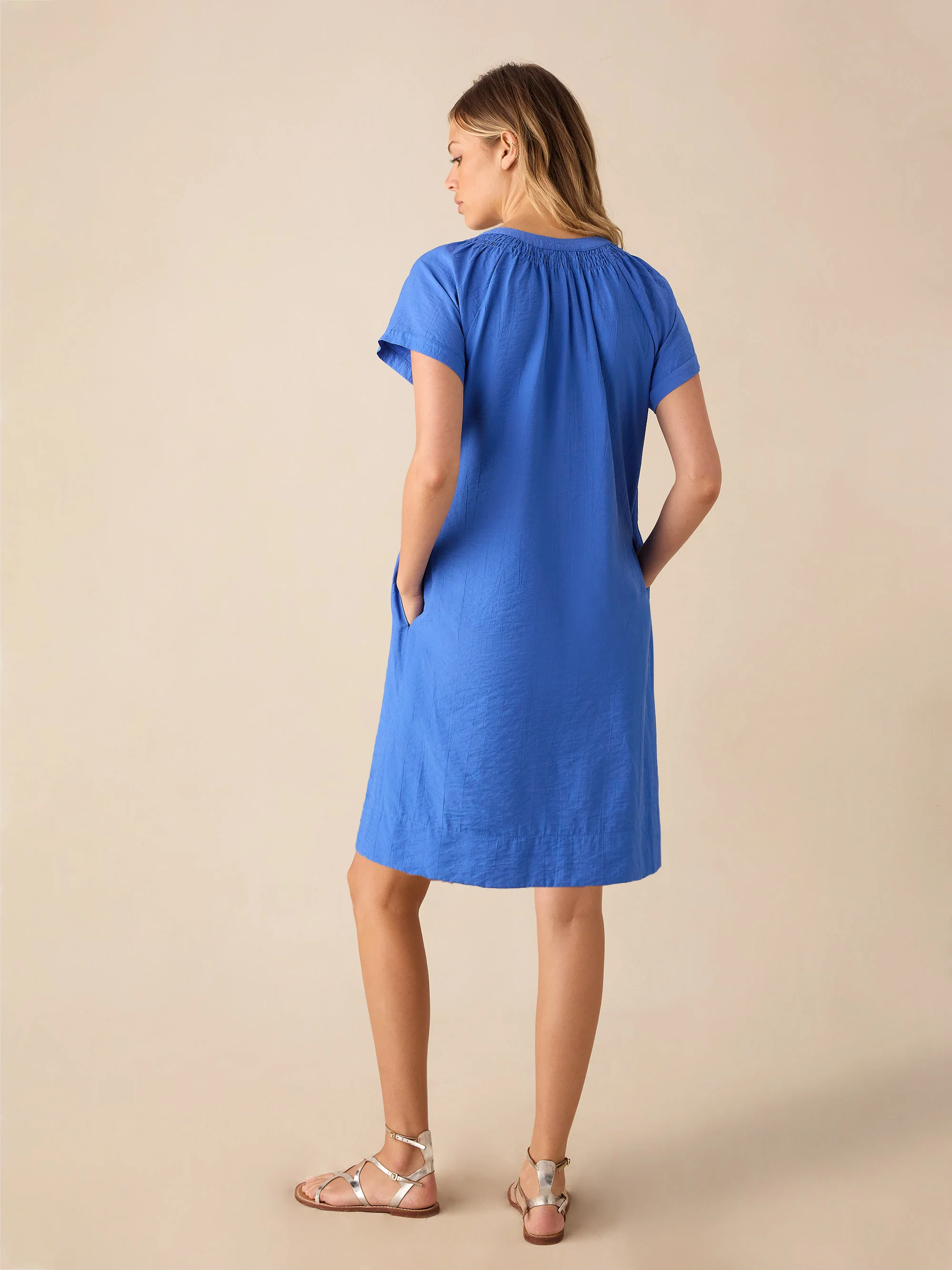 Blue Gathered Neck Short Dress