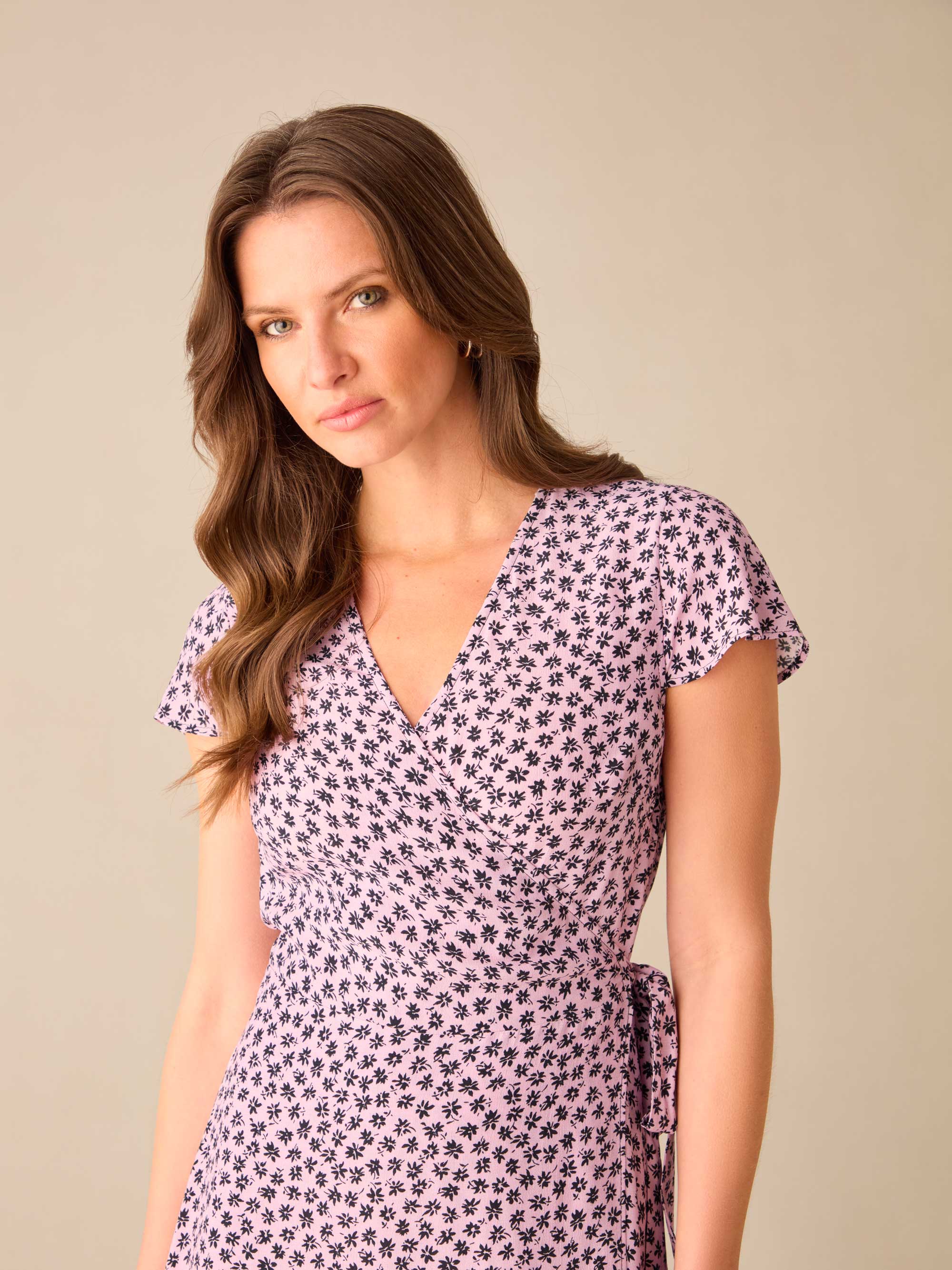 Petite Lilac Daisy Print Strappy Button Through Dress