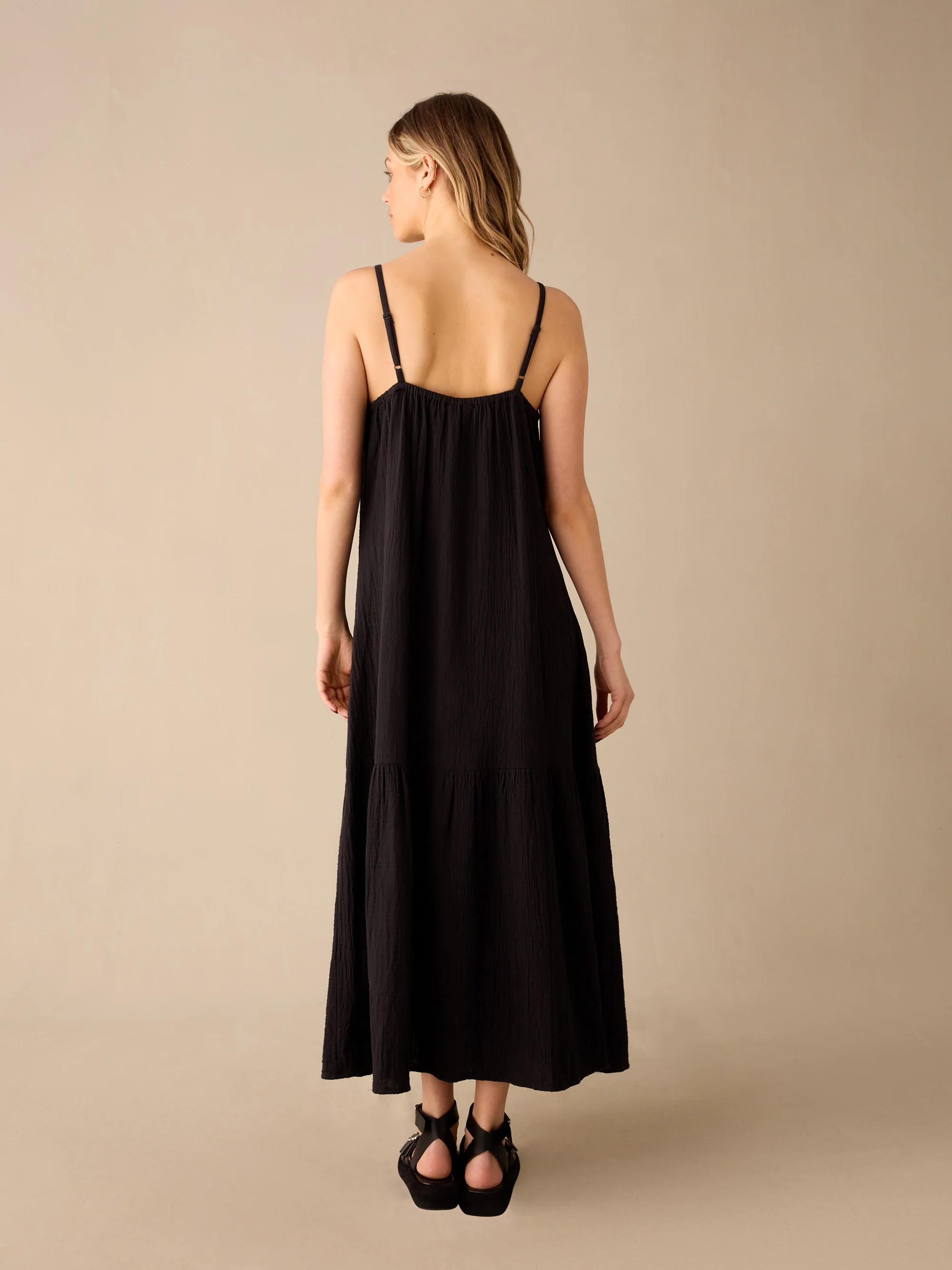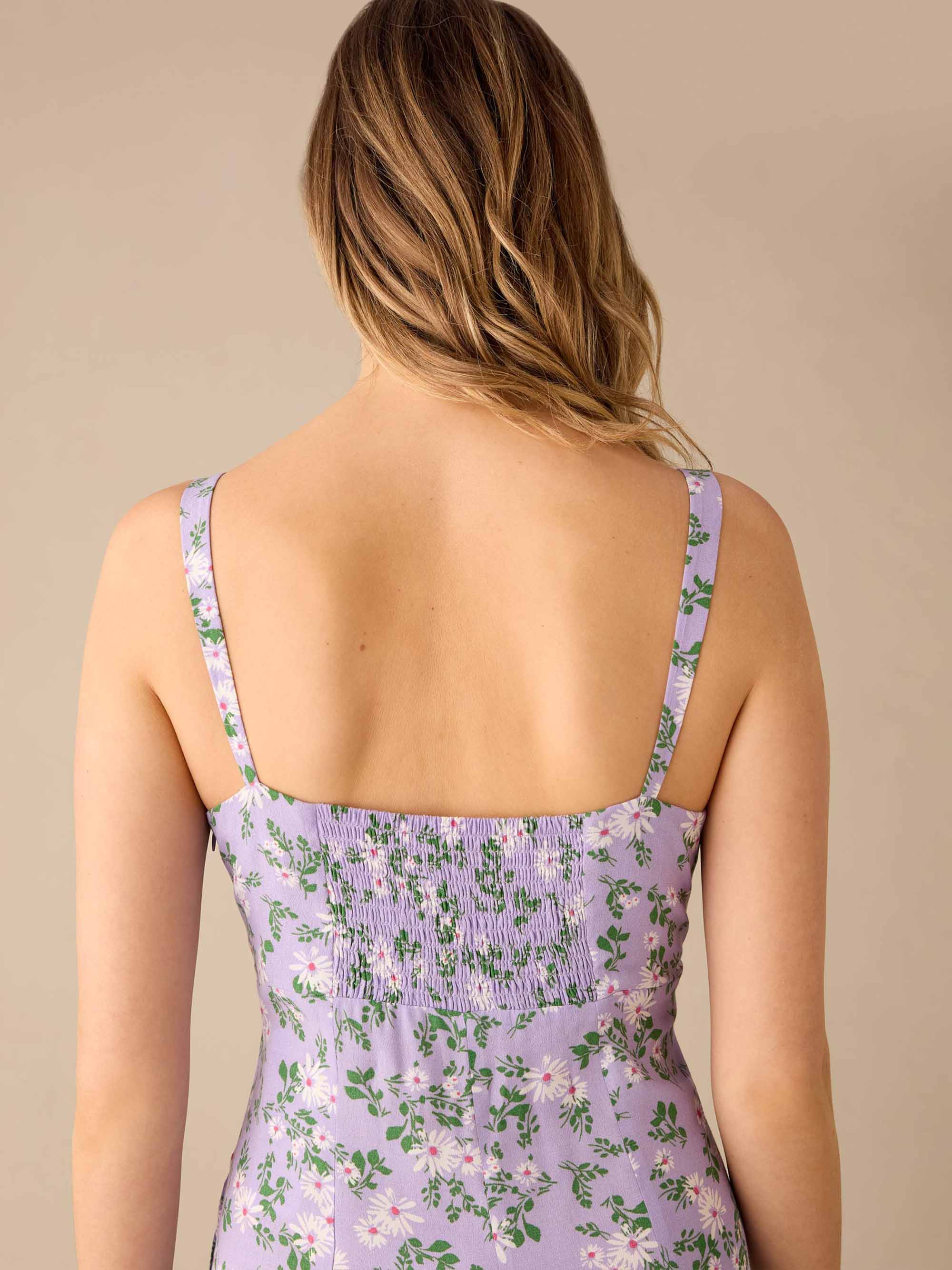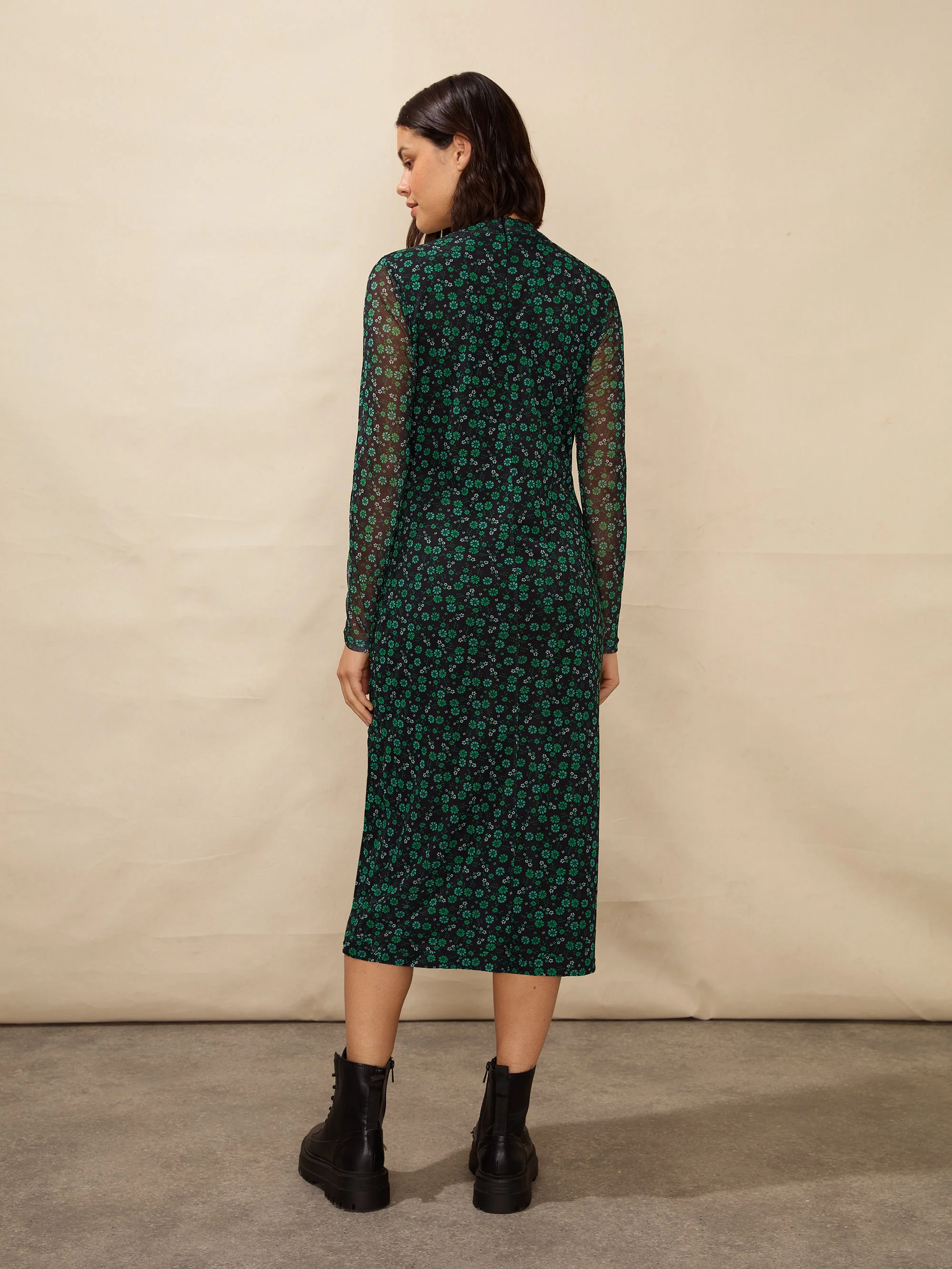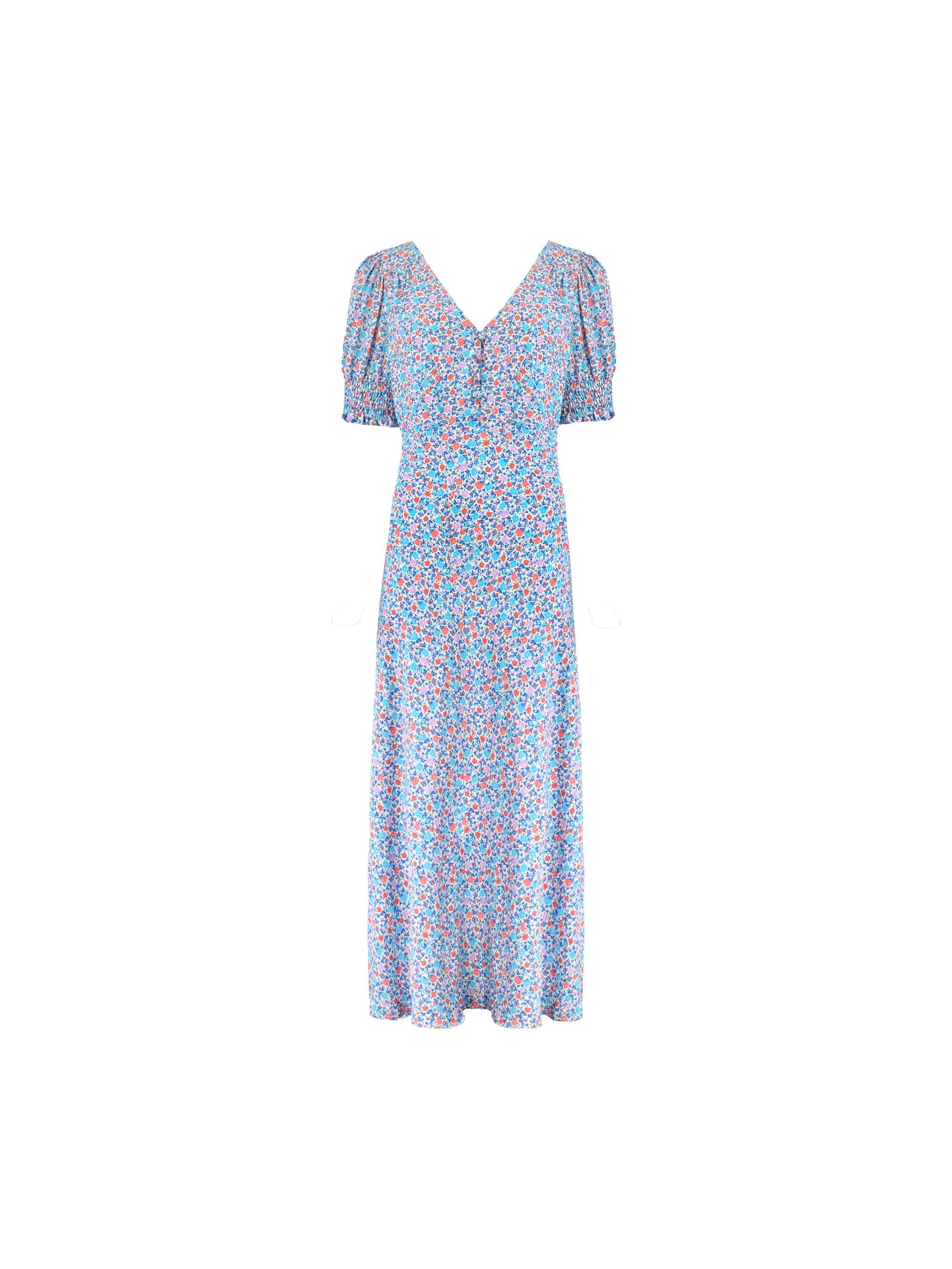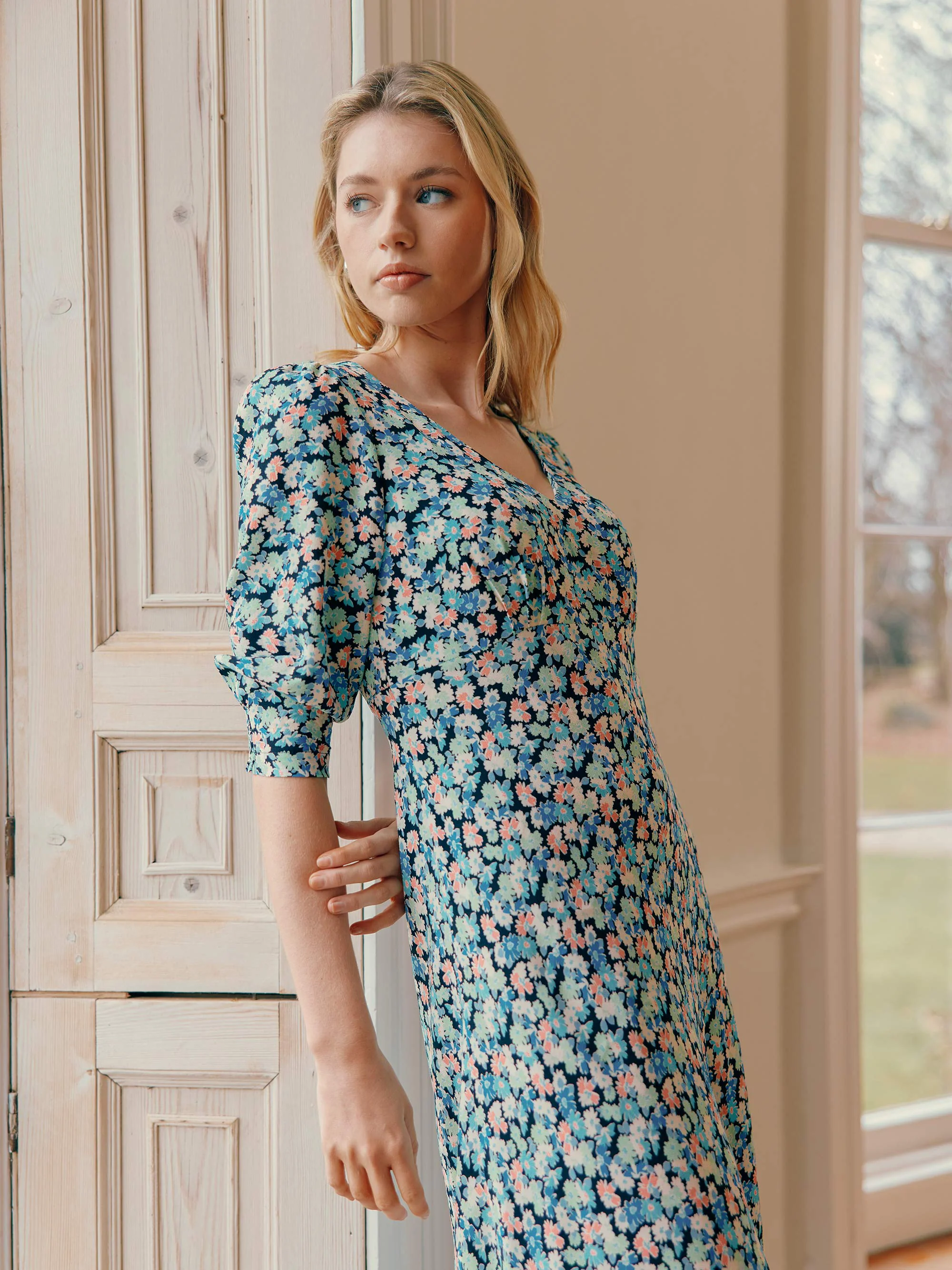 Multi Ditsy Print Shirred Cuff Midi Dress