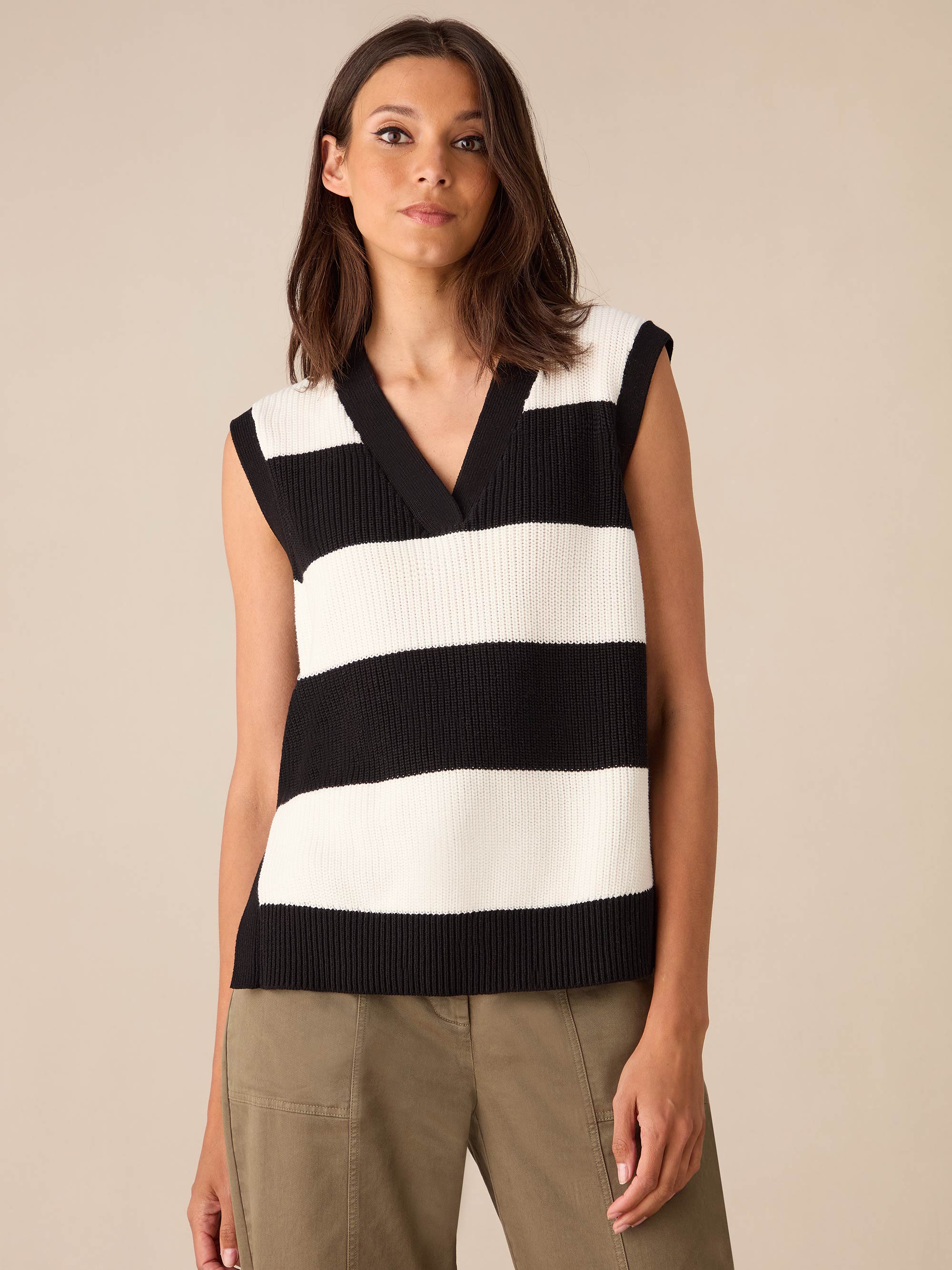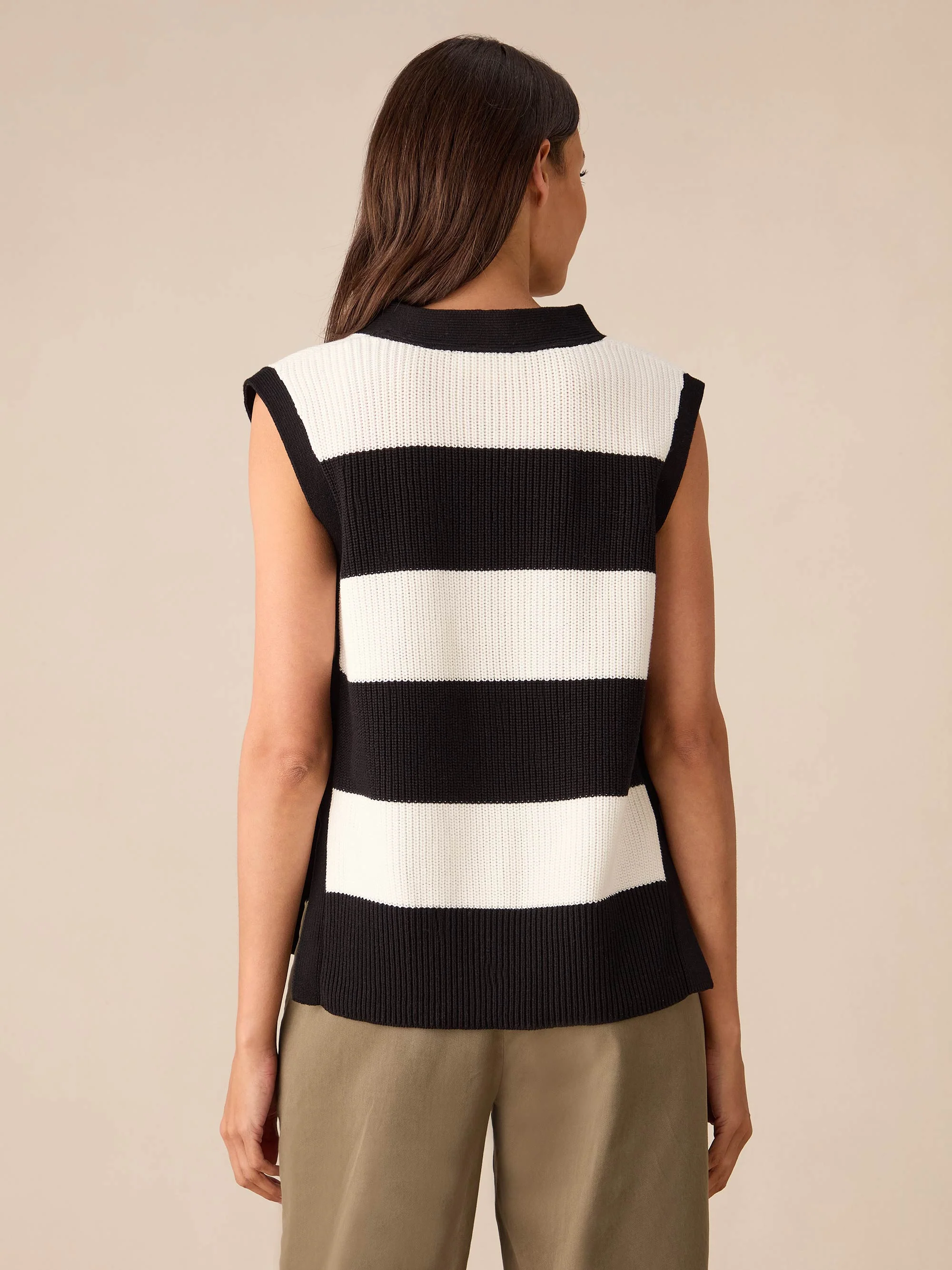 Monochrome Stripe Side Zip Knitted Vest