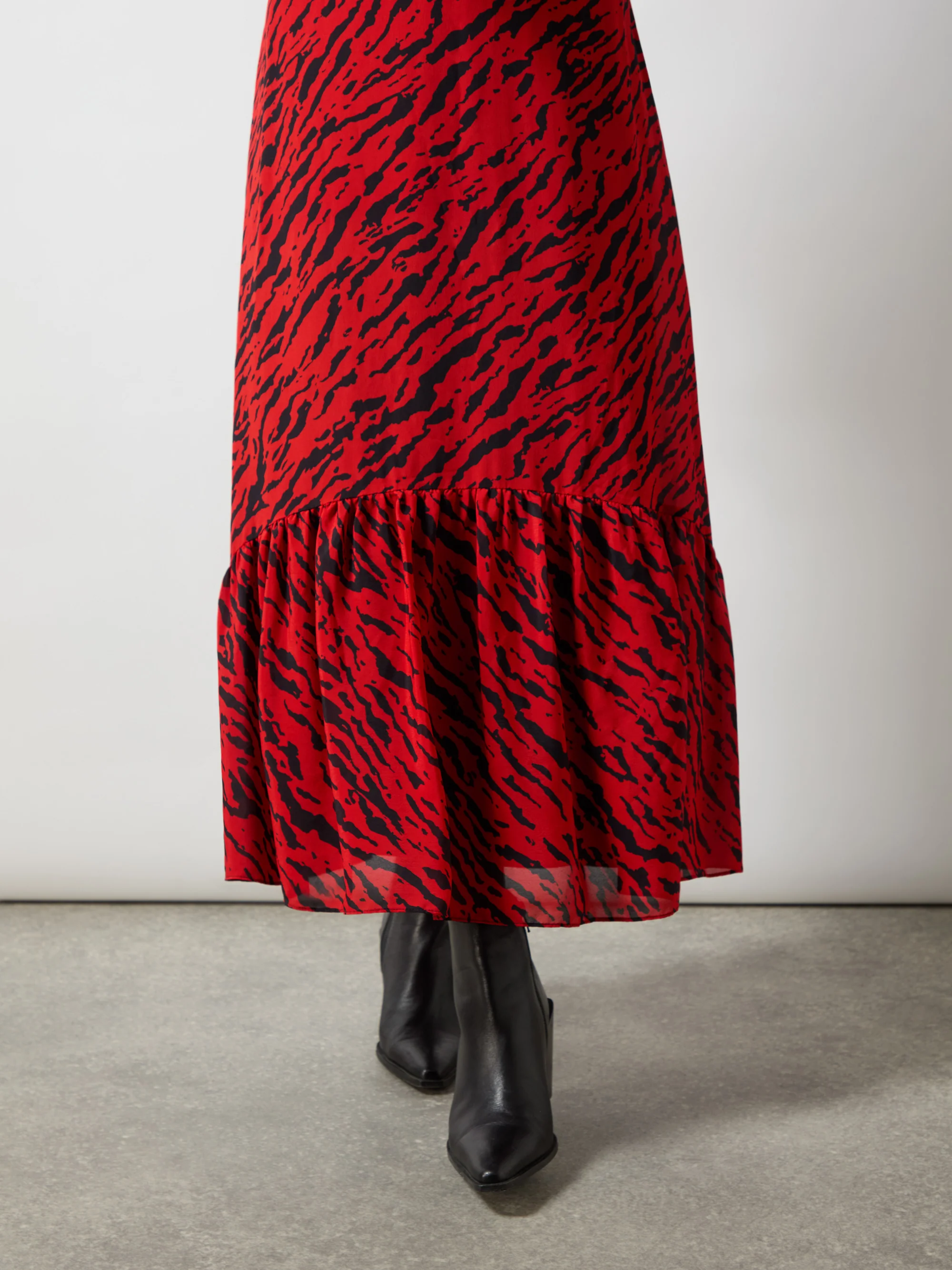 Red Zebra Print Tie Back Midi Dress