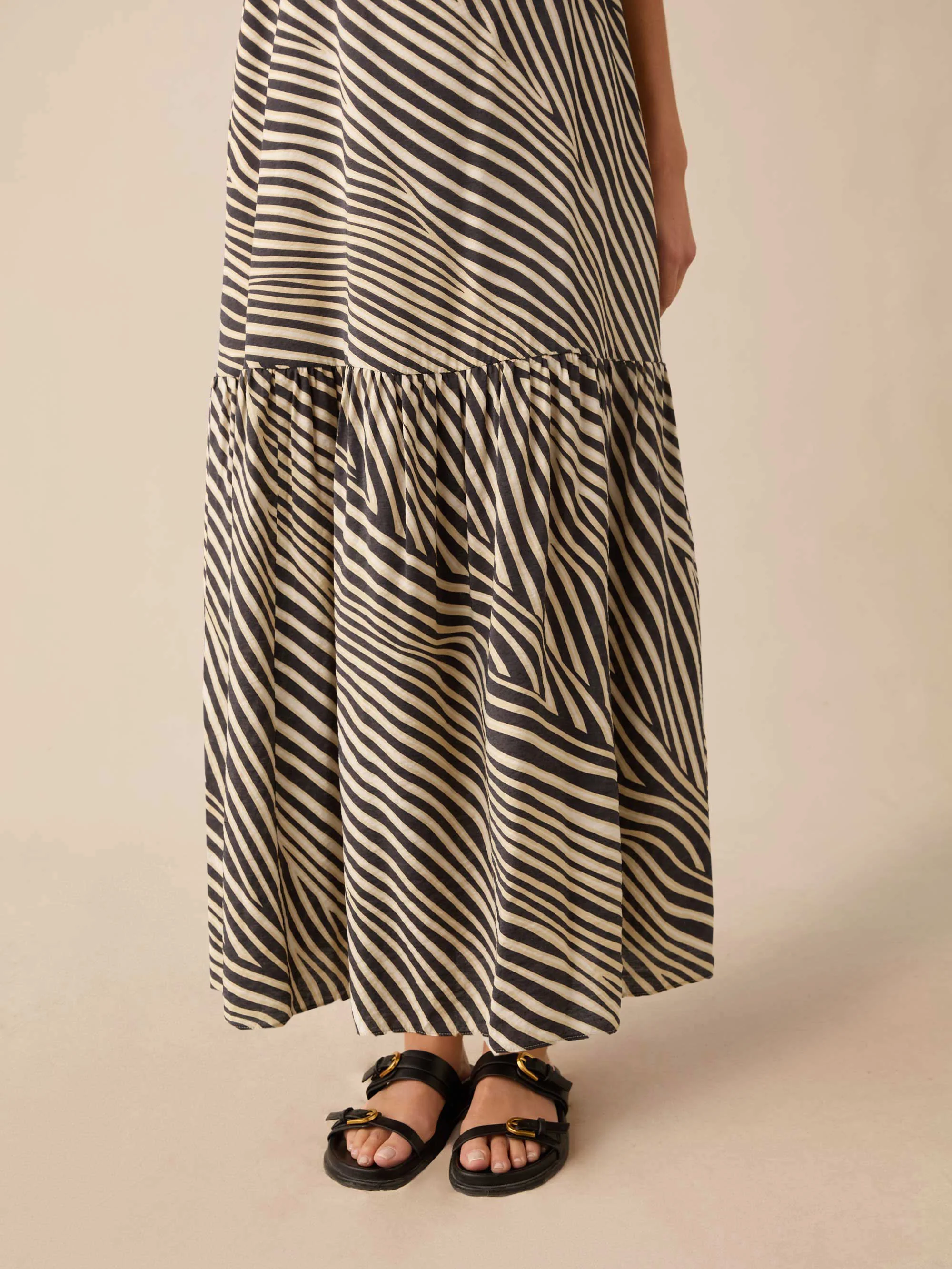 Petite Mono Chevron-Stripe Knitted Midaxi Skirt