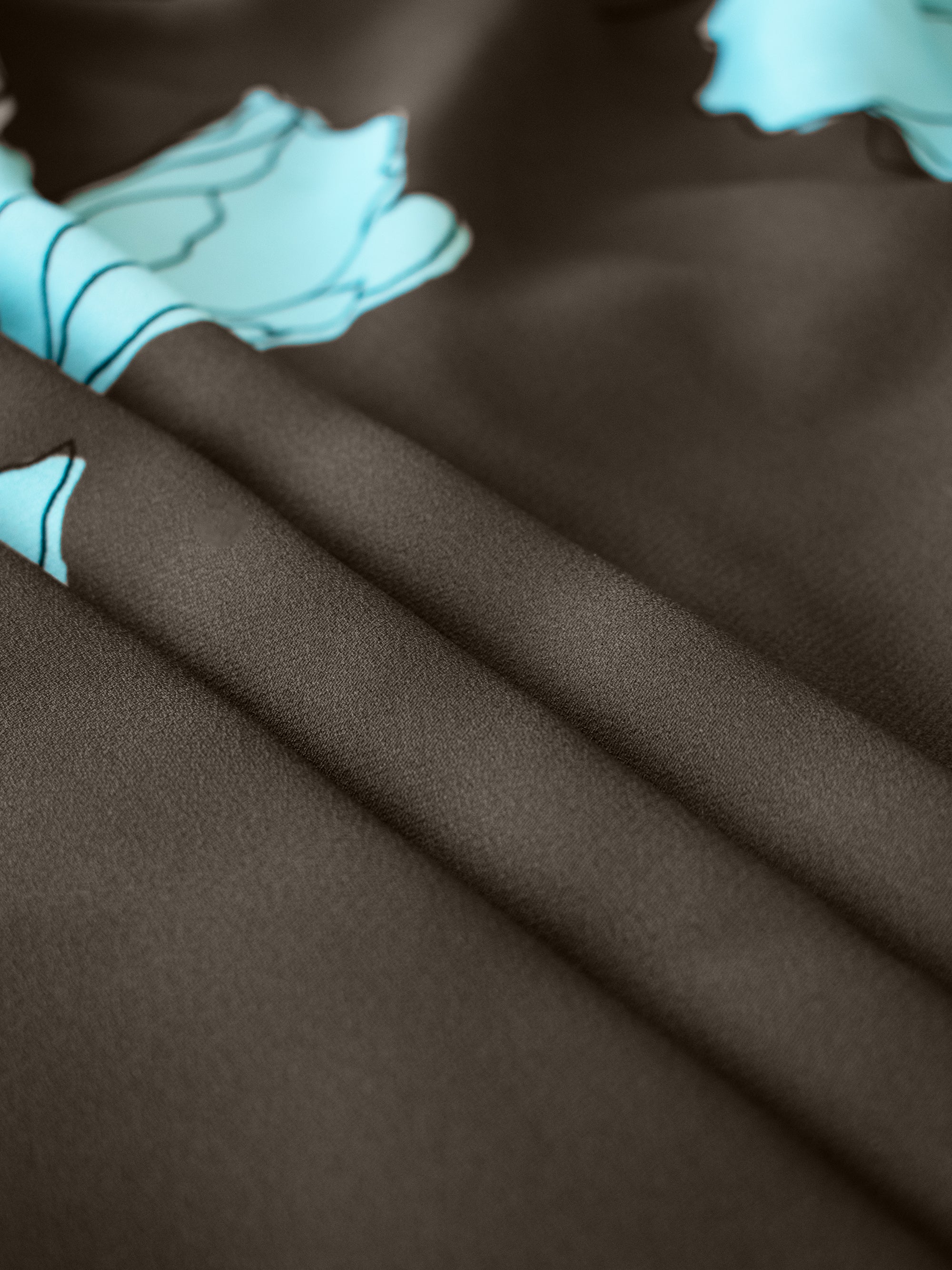 Contrast Ditsy-Print Puff-Sleeve Midi Dress