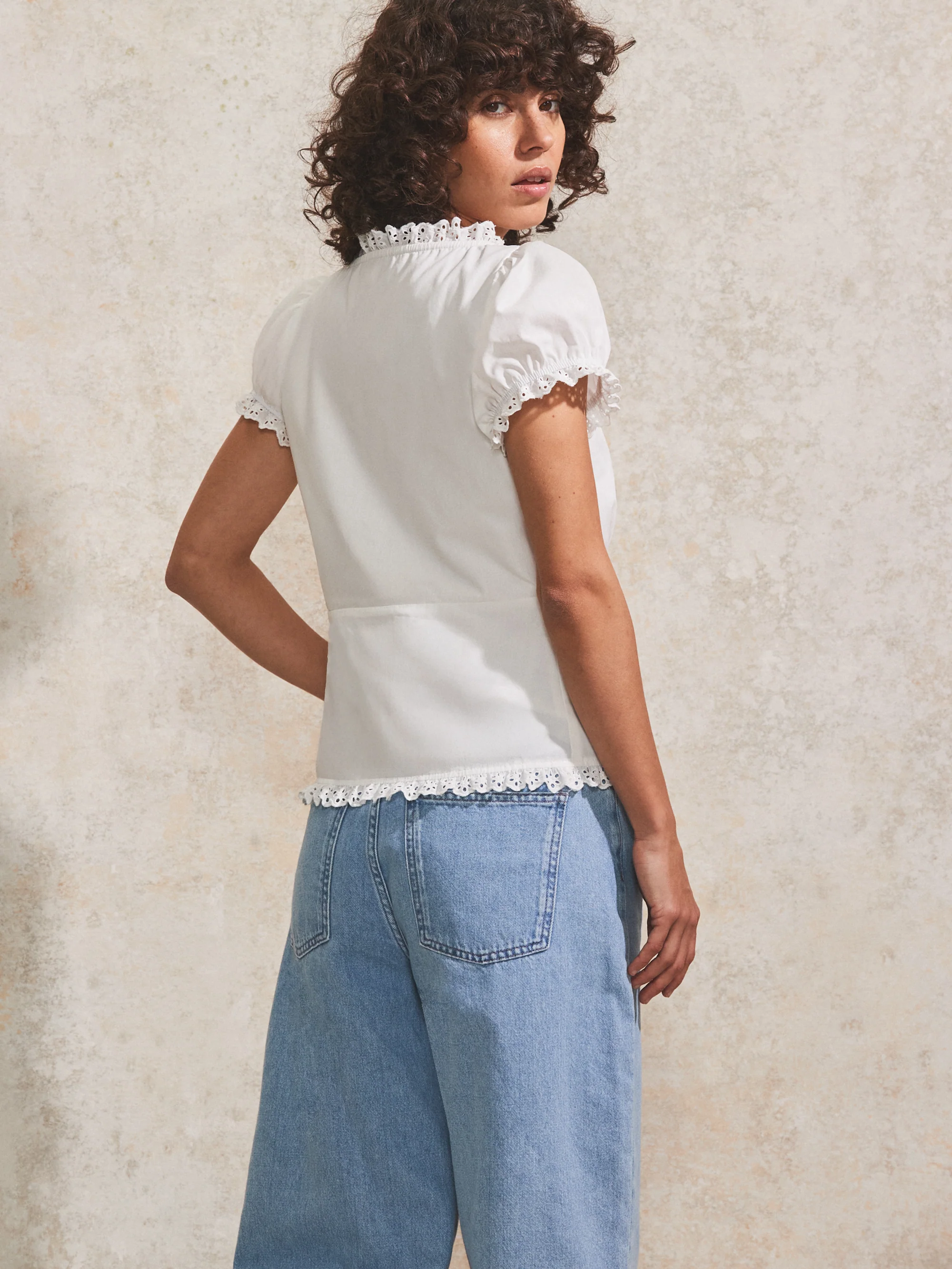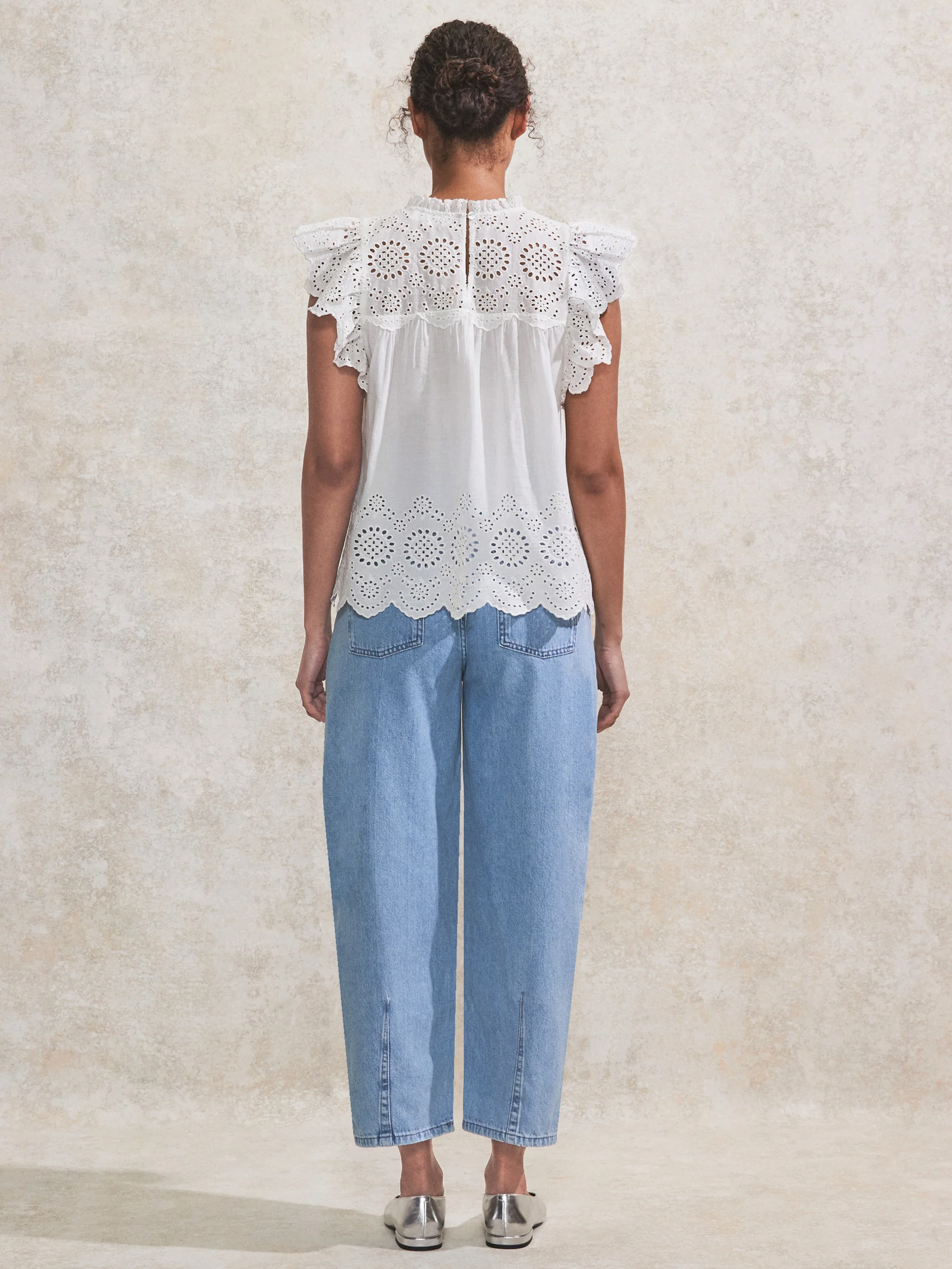 Ivory Pinstripe Linen-Blend Wide-Leg Trousers