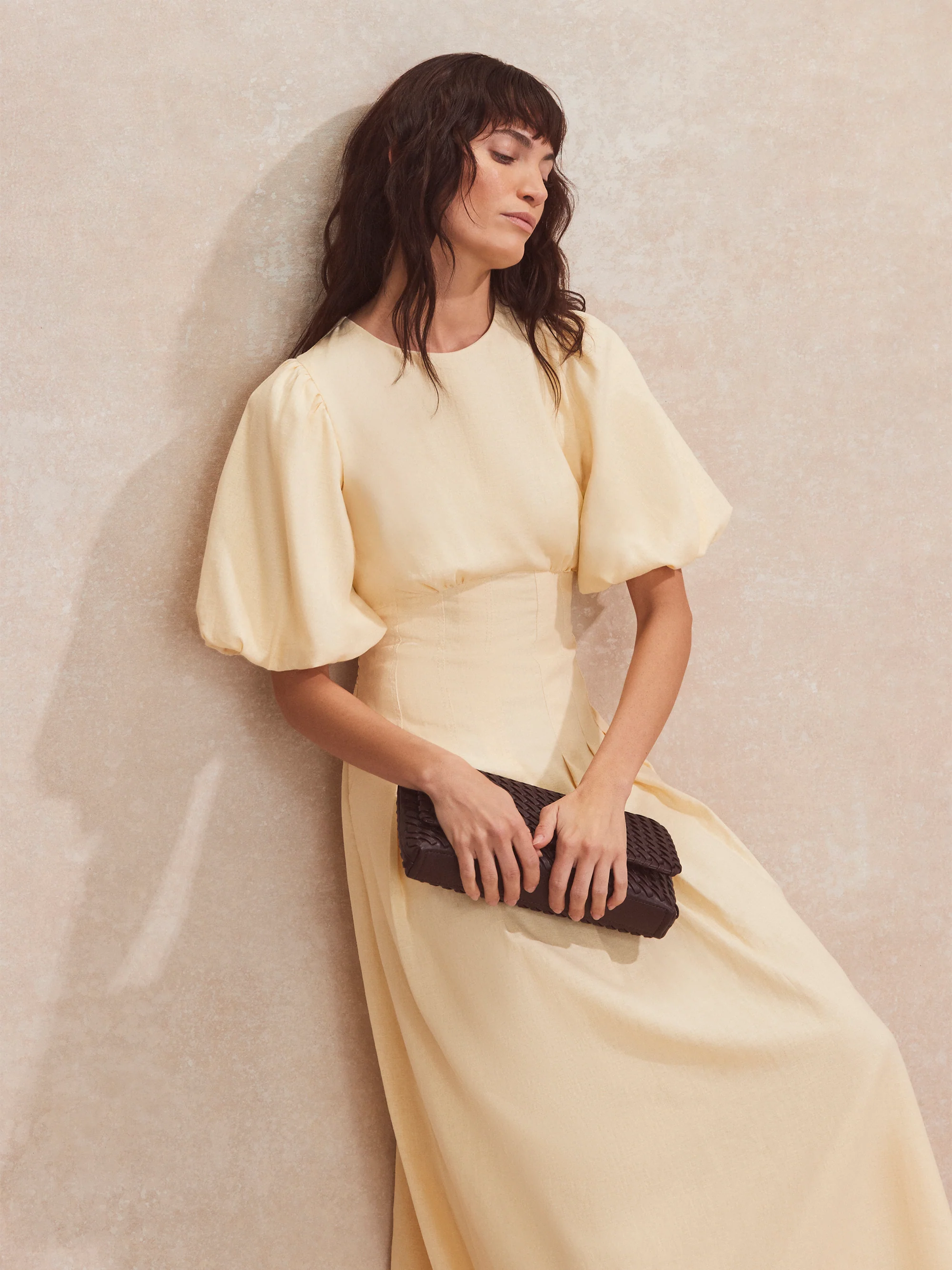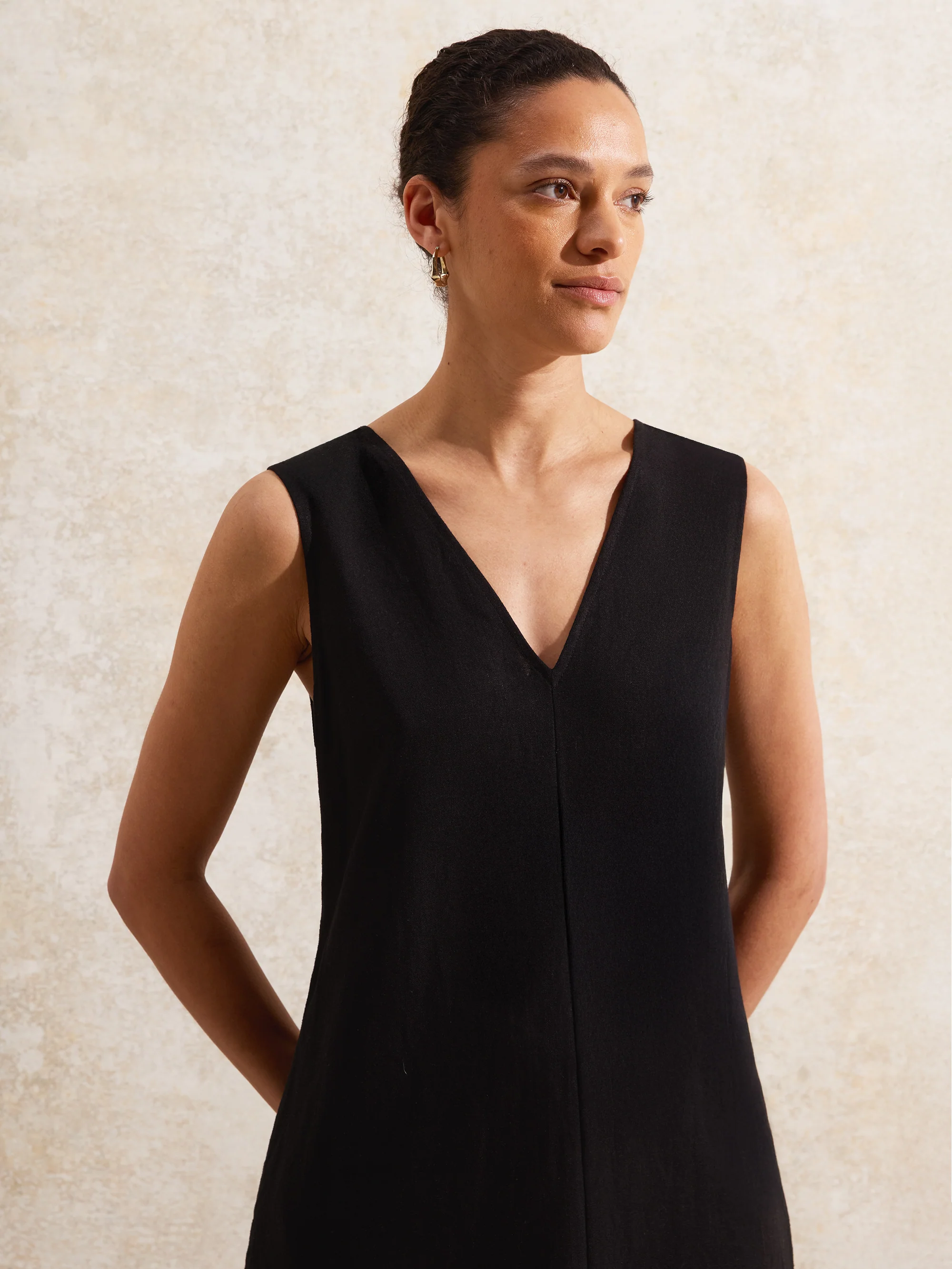 Black Linen-Blend Bias-Cut Maxi Skirt
